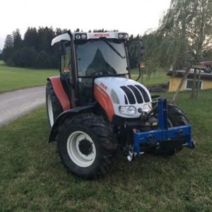 Steyr 495 Kompakt, Lastschaltgetriebe, Powershuttle, EHR, Kreuzschalthebel für Zusatzsteuergeräte, druckloser Rücklauf, hydraulischer Oberlenker, Frontkraftheber, DW Front.